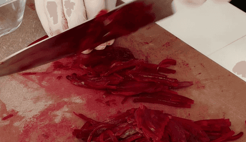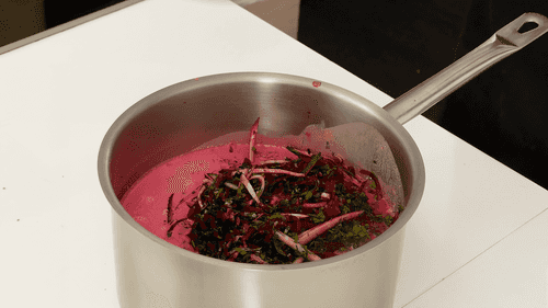 Peel the remaining beetroot and boil it whole until cooked. Save 500 ml of the broth and drain the rest.