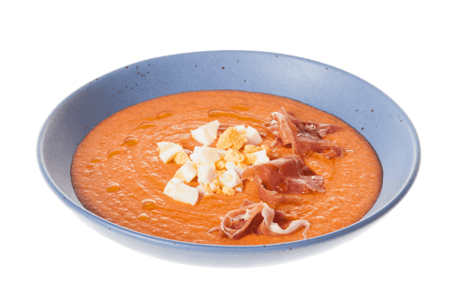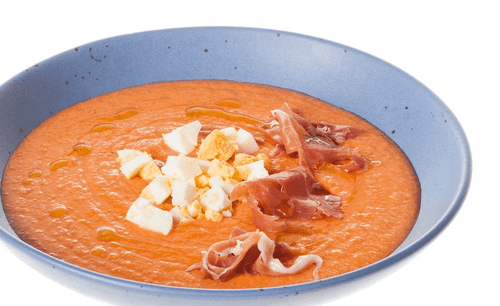 In Spain there is a tradition of making cold soups with water, olive oil, bread and vinegar, the most famous of which is gazpacho. Salmorejo is its brother. It is difficult to trace the differences: in both cases all the listed ingredients are present with tomatoes, but in short, salmorejo is served with eggs and jamon. It is well suited for hot days when you don't want a serious meal, but you need to replenish your strength.