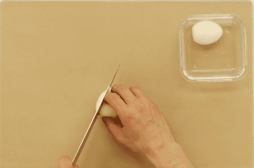 In a small saucepan, bring water to a boil and add the eggs, cooking on medium heat for 10-12 minutes. Then cool them.