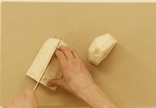 Clean the eggs. Cut the eggs and ham into large pieces.