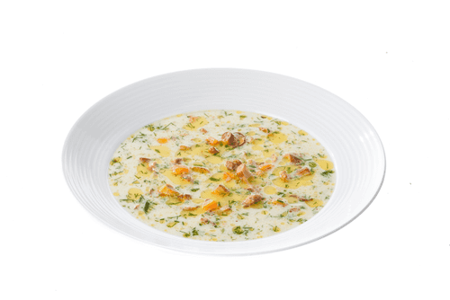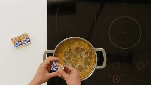 Add 3 bars of processed cheese to the soup, stirring well until the cheese melts. Season with salt and pepper to taste, then remove from heat and add chopped dill.