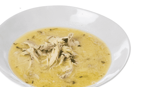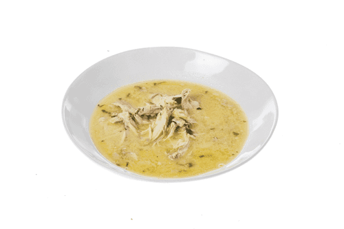 Add chicken meat to the soup and pour the saffron infusion through a sieve.