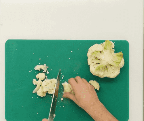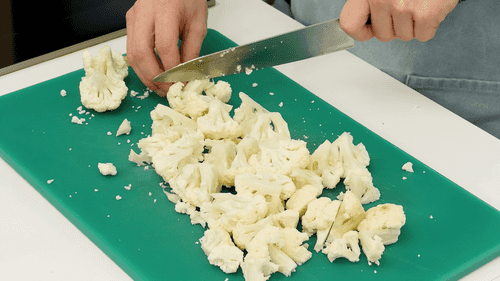 Chop the cabbage, setting aside a dozen small beautiful florets.