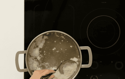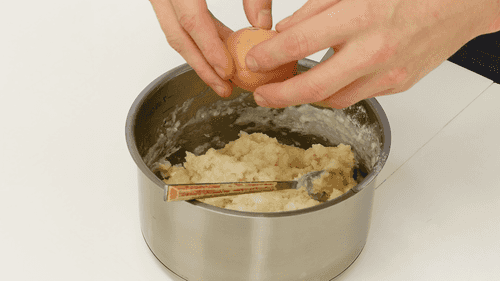 In 125 ml of boiling water, add salt and mix in flour thoroughly, then cool. Add an egg and mix well.