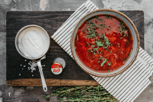Borscht with beef and sour cream