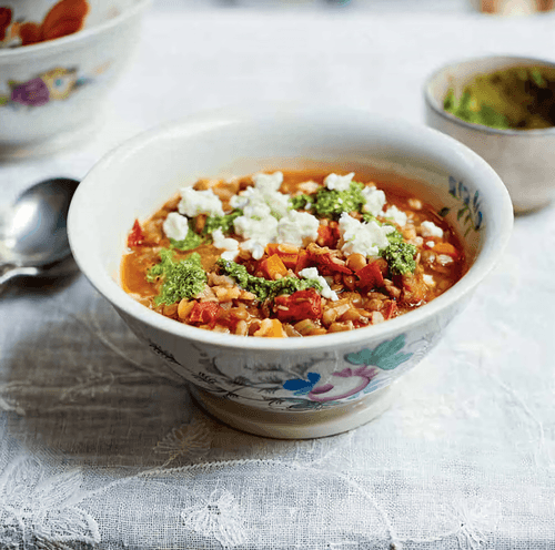 Tajik Rice Soup with Green Lentils