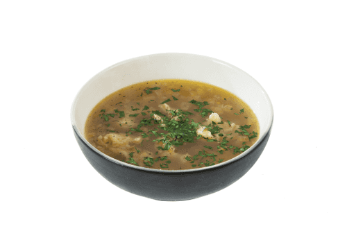 Take a little dough with a teaspoon and drop it into the boiling broth, scraping off the dough with a second teaspoon. Do this with all the dough and cook for about 3 minutes. Serve the soup garnished with chopped parsley.
