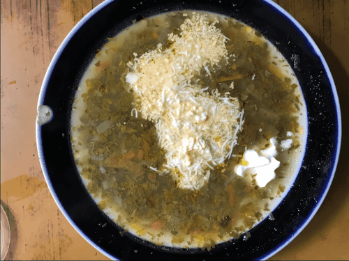 Shchi made from sorrel and greens is a traditional Russian dish known for its refreshing sourness and rich aroma of greens. Sorrel adds a piquant flavor to the soup, while tender carrots and onions contribute sweet notes. Historically, shchi was a staple everyday dish in Russia, with variations using seasonal ingredients allowing for dietary diversity. This version is prepared in spring and summer when fresh greens are particularly fragrant. Shchi is served with grated egg and sour cream, making it even more flavorful. With a balanced combination of tastes and lightness, they are perfect as a light summer lunch or dinner. This simple yet soulful dish conveys the warmth and coziness of home cooking.