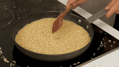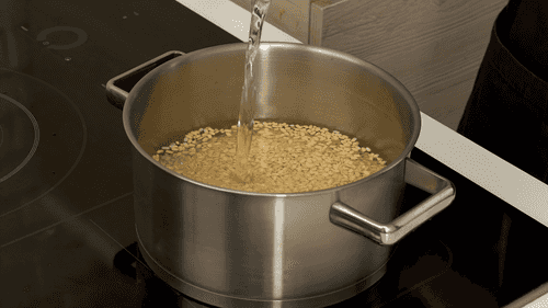 Pre-soaked mung beans are roasted in a dry pan, stirring constantly, until golden brown. This will take 10 minutes. Then remove from heat and rinse under running water.