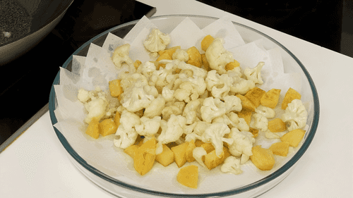 Fry the potatoes and cabbage for 2-5 minutes. They should turn golden but remain firm. Transfer the fried vegetables to paper towels to remove excess fat.