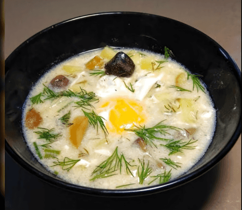 Southern Czech kujalda is a traditional soup of Czech cuisine, known for its delicate texture and aroma of forest mushrooms. The roots of this dish trace back to the southern regions of the Czech Republic, where the mushroom season inspires cozy and rich flavors. The base of the soup consists of potatoes, forest mushrooms, and bay leaves that add a hint of spice. A mixture of sour cream and flour makes it velvety, while fresh dill adds a light touch of freshness. A key feature is the addition of whole eggs that are lightly set in the hot broth, creating a textural contrast. Kuijalda pairs perfectly with crusty bread and is suitable for cozy family dinners or cool evenings, warming with its rich flavor.
