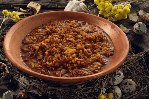 Jainist soup reflects the philosophy of ahimsa, a principle of non-violence deeply rooted in Jainism. This soup from Eastern India combines the softness of lentils, the sweetness of raisins, and the richness of sun-dried tomatoes. Spices like oregano and red pepper add a subtle spiciness, creating a harmonious balance of flavors. Due to its composition, the soup is light and nutritious, perfect for those who appreciate the natural taste of ingredients. Its preparation is not just a culinary process but a meditative act aimed at awareness and respect for nature. Each spoonful weaves in a sense of peace and meaning, allowing enjoyment not only of flavor but also of the moment. This dish reminds us that food can be not only pleasure but also a way to express gratitude to the world.