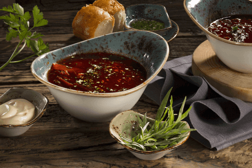 Ukrainian borscht with pampushki