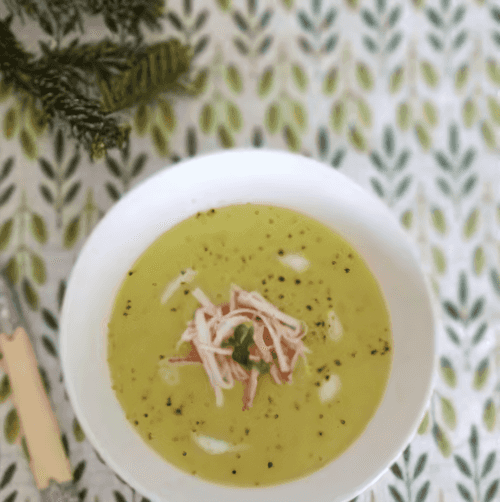 Green pea puree soup with crab is an elegant dish of European cuisine that combines the tenderness of vegetables and the delicate taste of crab meat. Green peas add sweet herbal notes to the soup, while potatoes and cauliflower provide a creamy texture, and milk makes the flavor soft and rich. This soup is perfect for both a light lunch and an exquisite dinner. Such soups were first prepared in French gastronomic traditions, where harmony of flavors and sophistication of presentation are valued. It is served with pieces of crab that add a refined seafood aftertaste, while pea shoots add freshness and aesthetics. It is recommended to serve hot with crispy toasts or baguette to highlight its delicate consistency.