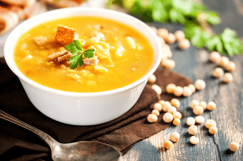 Pea soup with chicken and curry