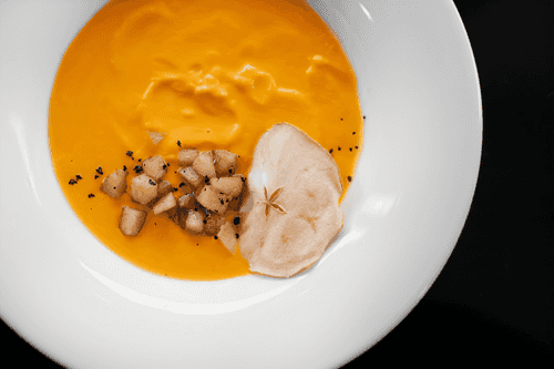 Pumpkin soup with coconut milk and apple chutney