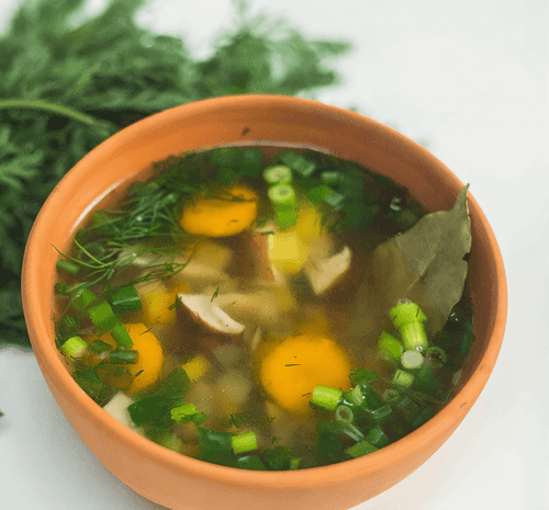 Add salt and pepper to taste. Add part of the greens to the soup as soon as it boils. The second part is added to the plate when serving. This way, the soup will absorb the aromas of the greens while retaining more vitamins.