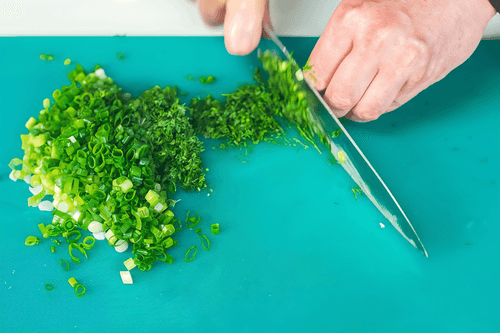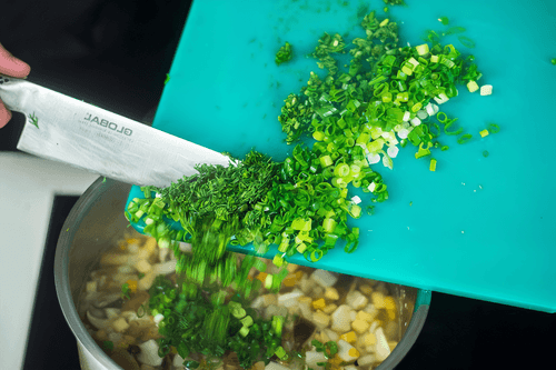 Chop green onions and dill. The green color will liven up the soup, and seasonal vitamins are still important.