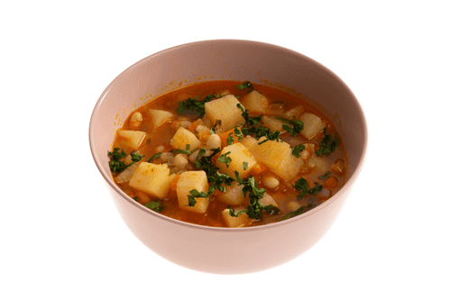 A thick, rich stew - lean but filling. Beans replace meat here and do a great job. Try to use white beans - they have a soft, creamy taste, unlike red beans.