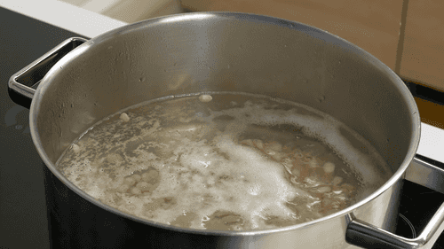 Drain the water from the beans, pour them into a pot, add two liters of water, and cook until done. This can take from 30 minutes to one and a half hours depending on the variety.