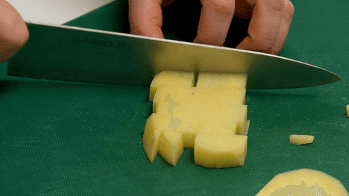 Cut the potato into small cubes and add it to the beans, also throw in a bay leaf and cook for 15-20 minutes.