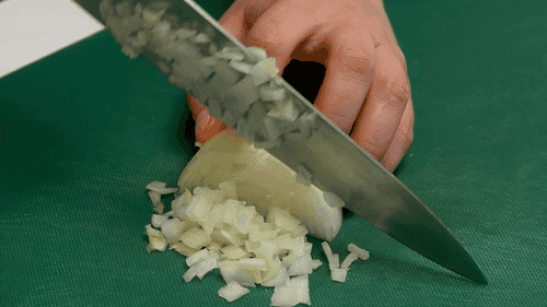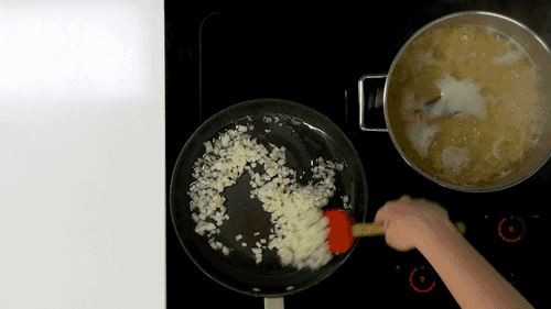 Heat vegetable oil in a pan and sauté the onion until translucent.