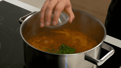Chop the parsley and add it to the finished soup. Salt and pepper to taste.