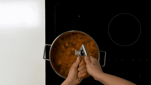 Add crushed garlic through a press. Cover the soup with a lid and let it steep for 5-10 minutes.