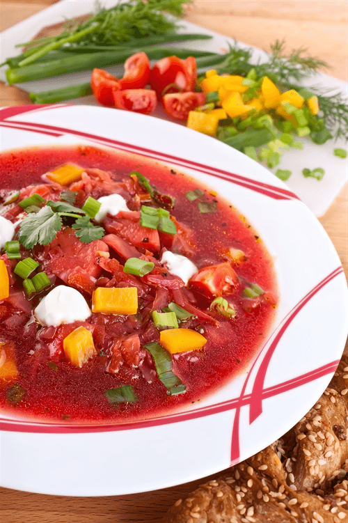 Summer borscht is a light and refreshing dish of Ukrainian cuisine, perfect for warm weather. Its roots trace back to folk culinary traditions where fresh seasonal vegetables played a key role in nutrition. This borscht features the soft, slightly sweet taste of beets harmonizing with the tenderness of zucchini, the tanginess of tomatoes, and aromatic notes of greens. Importantly, it is made with mushroom broth or water, making it light and healthy. When served, sour cream, milk or buttermilk is added for creaminess and texture. Summer borscht refreshes wonderfully, satisfies and energizes while remaining a beloved dish that unites traditions and tastes across generations.