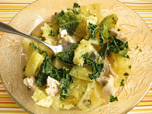 Kale cabbage soup is a modern interpretation of the classic Russian soup with roots deep in history. This dish combines the traditional richness of meat broth with the lightness of nutritious kale, known for its vitamin richness. The cabbage is carefully prepared to preserve its fresh taste and texture, while sautéed roots and onions add depth of flavor to the soup. Bay leaves, spices, and a flour dressing enhance the richness, creating a harmonious balance of flavors. Serving with meat and sour cream makes the soup particularly hearty, while herbs add freshness. This dish warms and nourishes while staying true to the spirit of Russian cuisine but brings modern accents through the use of kale.