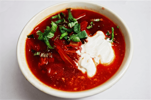 Meat borscht is a soulful Ukrainian dish that embodies the generosity and warmth of home cooking. Its deep ruby color is thanks to beets, while the rich flavor unfolds through meat broth, cabbage, and roots. The secret to perfect borscht lies in the harmony of sweet and sour notes provided by vinegar and sugar. This soup is more than just food; it is a symbol of hospitality that brings families together at one table. Borscht is traditionally served with sour cream that softens its brightness and with garlic pampushki. It tastes great fresh or the next day when its flavor becomes even richer. This recipe allows you to make a hearty, rich borscht that warms and delights—a true gastronomic pleasure infused with the spirit of Ukrainian cuisine.