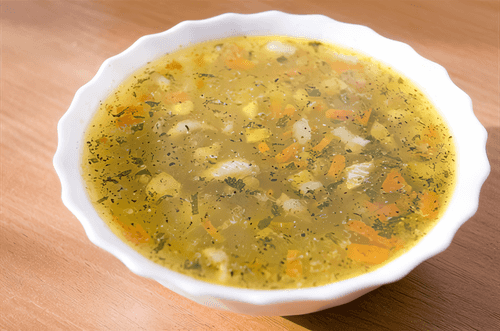 Cook vegetable soup (potato, rassolnik, sauerkraut shchi) in water.