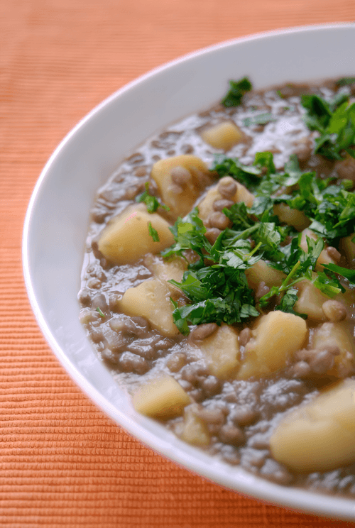 Cook the soup until the potatoes are done. Then remove it from the heat, let it cool slightly, and add green peas.