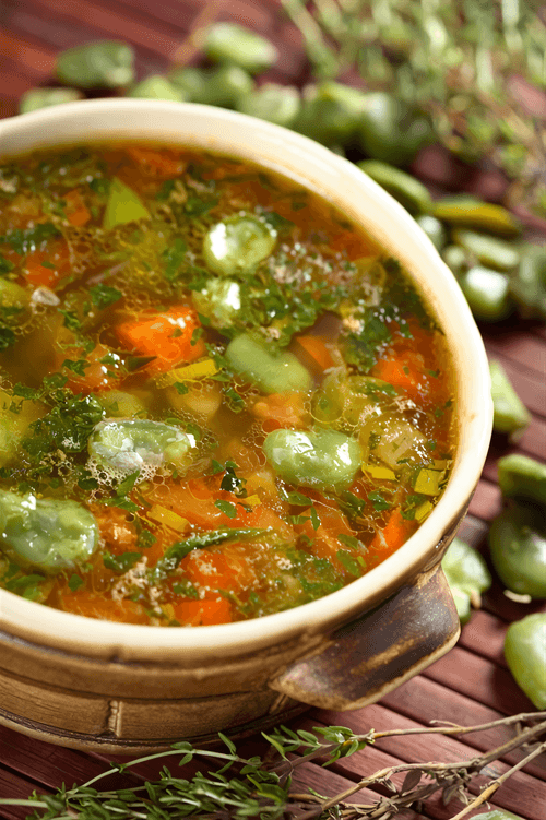 Add chopped vegetables to the broth, salt if the broth is not salty enough, and cook for about 10 minutes until the vegetables are ready. Before serving, sprinkle the soup with finely chopped herbs. This soup should be served with sour cream and grain bread.