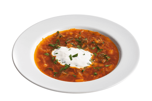 Homemade borscht is the true embodiment of Ukrainian cuisine, a warming and hearty soup with rich flavor and aroma. Its history goes back centuries, symbolizing the coziness of family dinners and the traditions of folk cuisine. The main ingredient in borscht is beetroot, giving the dish its characteristic ruby color and a slight sweetness balanced by the acidity of tomato paste. Beef makes the broth rich and filling, while cabbage, carrots, and potatoes add pleasant texture. Borscht truly reveals its flavor after steeping, and serving it with sour cream makes it creamier and softer. It is not just a soup but a whole gastronomic story conveying the warmth of home and the generosity of Ukrainian land.