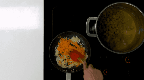 Add the carrot, fry while stirring for a couple more minutes.