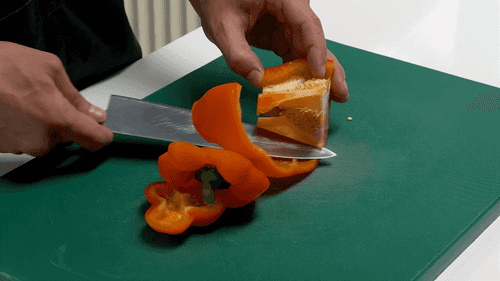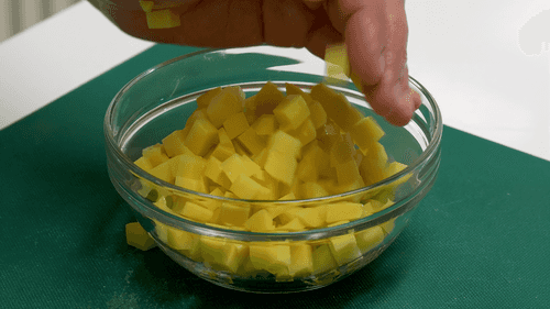 Remove seeds from the bell pepper and cut it into cubes.