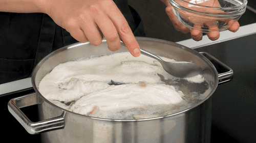 In a thick-walled pot, heat vegetable oil and fry the chicken skin until golden brown. The fat rendered from the skin will give the soup a richer flavor.