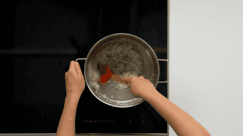 Remove the fried skin from the pot and add onion, sauté until golden.