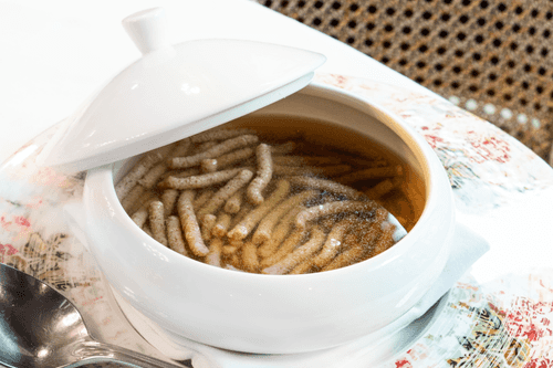 Press the dough into hot broth. The resulting worms are passatelli. Ideally, their weight should also be 180 grams.