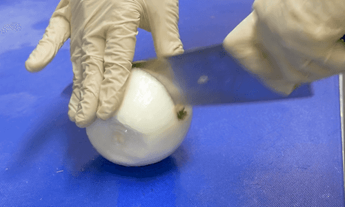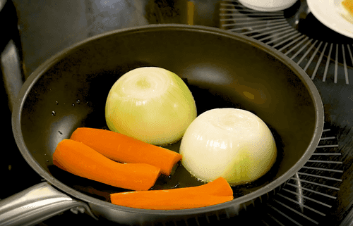 Fry the onion and carrot in a pan until golden crusts appear on both sides.