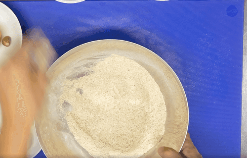 Combine breadcrumbs and parmesan. Add part of the flour.