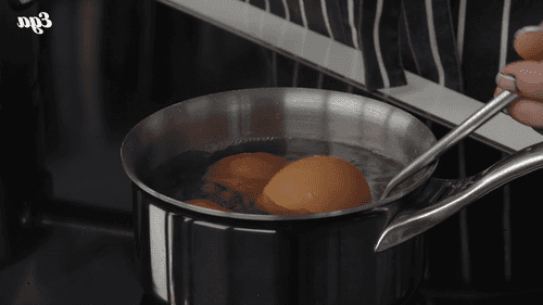 Prepare the eggs: take them out of the fridge in advance and let them warm to room temperature. Then drop them into boiling water, cook for exactly 6 minutes, transfer to cold water and peel. This timing results in a firm white and slightly runny yolk.