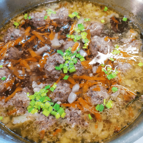Meatball soup with cauliflower is a delicate and aromatic dish that combines the softness of meatballs and the freshness of vegetables. It may have been inspired by traditional European soups, but this version is unique with its own notes. The combination of ground beef, leeks, and spices gives the soup depth of flavor, while cauliflower adds lightness and health benefits. Quail eggs make the meatballs tender, and a pinch of chili pepper adds a slight spiciness. It is perfect for cozy family lunches or light dinners. The soup pairs well with fresh bread or greens, and its rich, warming taste makes it an excellent choice in cooler weather. The simplicity of preparation and rich flavor make this recipe worth trying!