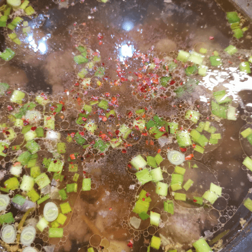 One minute before readiness, add green onions and chili pepper. Salt to taste.
