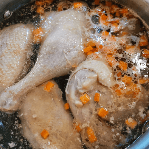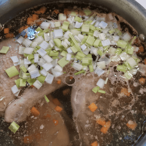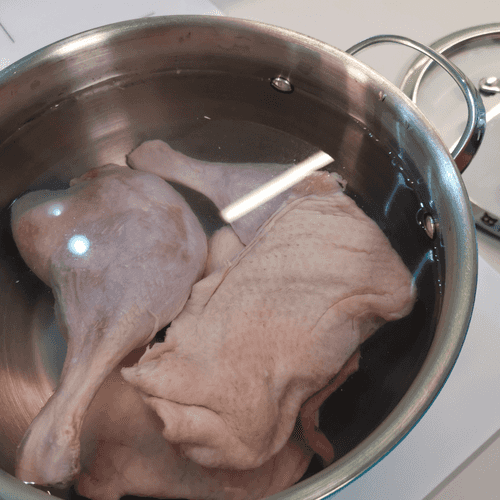Place the duck in a pot and cover with water (about 3.5 liters). Put it on high heat.