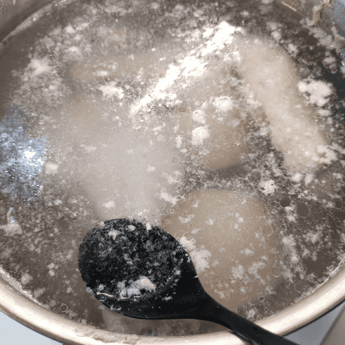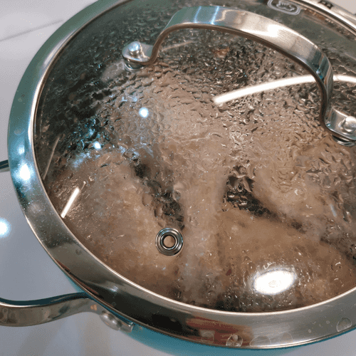 Periodically remove the foam. Once the water boils, reduce the heat.
