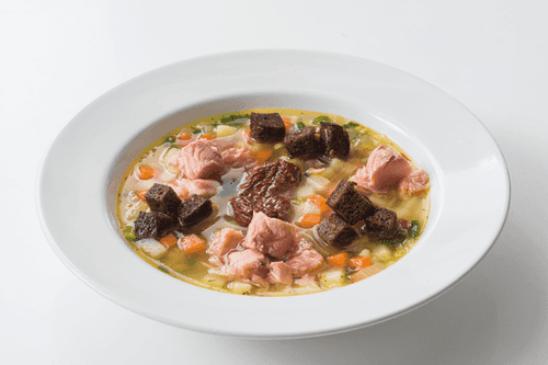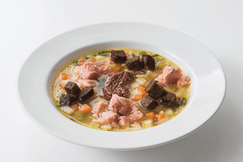 Lenten pea soup is a traditional dish of Russian cuisine, nutritious and warming. Its roots trace back to the history of lenten meals where peas served as an important source of protein. This soup has a soft, velvety texture with a pleasant sweet note complemented by the aroma of sun-dried tomatoes, garlic, and fresh herbs. Crispy Borodinsky croutons and pieces of smoked fish add richness and depth to the flavor. The dish is perfect for a lenten menu but due to its harmonious flavors will appeal to everyone. Ideal in cold weather when one seeks something comforting and hearty.