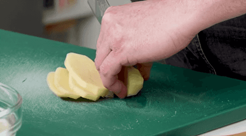 Cut the potatoes into small cubes.
