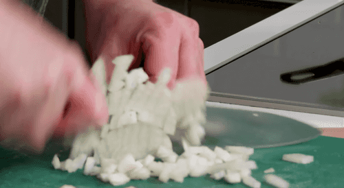 Cut the onion and carrot into the same cubes.